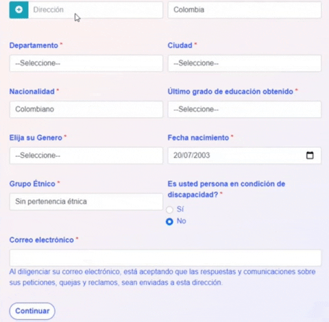 5- Registra tus datos personales y dale al botón Continuar