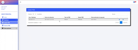 3- En ésta pantalla podrás ver las PQR previamente creadas y dar Clic en el símbolo de descarga